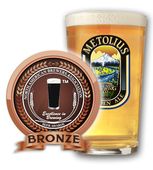 This golden colored ale closely approximates a lager in its crisp, dry palate, low hop aroma, light body, light malt sweetness and clean aftertaste. Metolius Golden is a well-balanced, refreshing, food friendly beer that goes down easily on a warm afternoon. Available in 22 oz bottles.